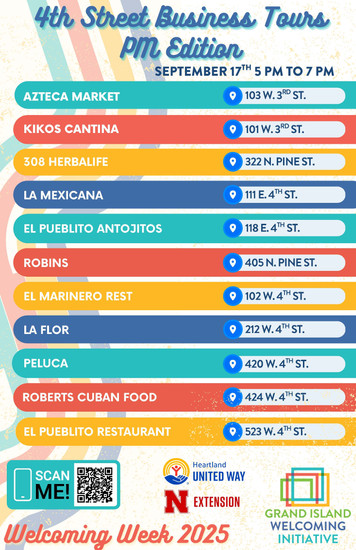 Join Heartland United Way and Sandra Barrera with UNL Extension on Wednesday, September 17th from 5:00–7:00 PM for a special FREE Diverse Business Tour of 4th Street and beyond!